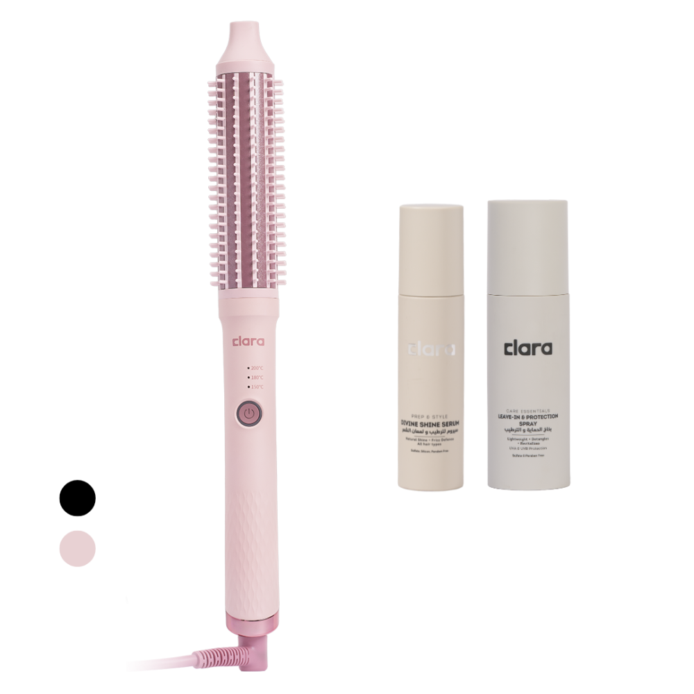 فرشاة كلارا الذكية 3 في 1 الجهاز مثالي لتصفيف الشعر المجعد والناعم وتسريحه بأسرع وقت، بفضل ميزة تصميم الفرشاة الساخنة بشكل 360 درجة، يتميز الجهاز بتقنية الأيونات السالبة لمنع تطاير الشعر وسهولة الاستخدام مع المقبض المضاد للإنزلاق وطبقة مقاومة للحرارة في أعلى الجهاز لضمان عدم حدوث حروق ليديك.