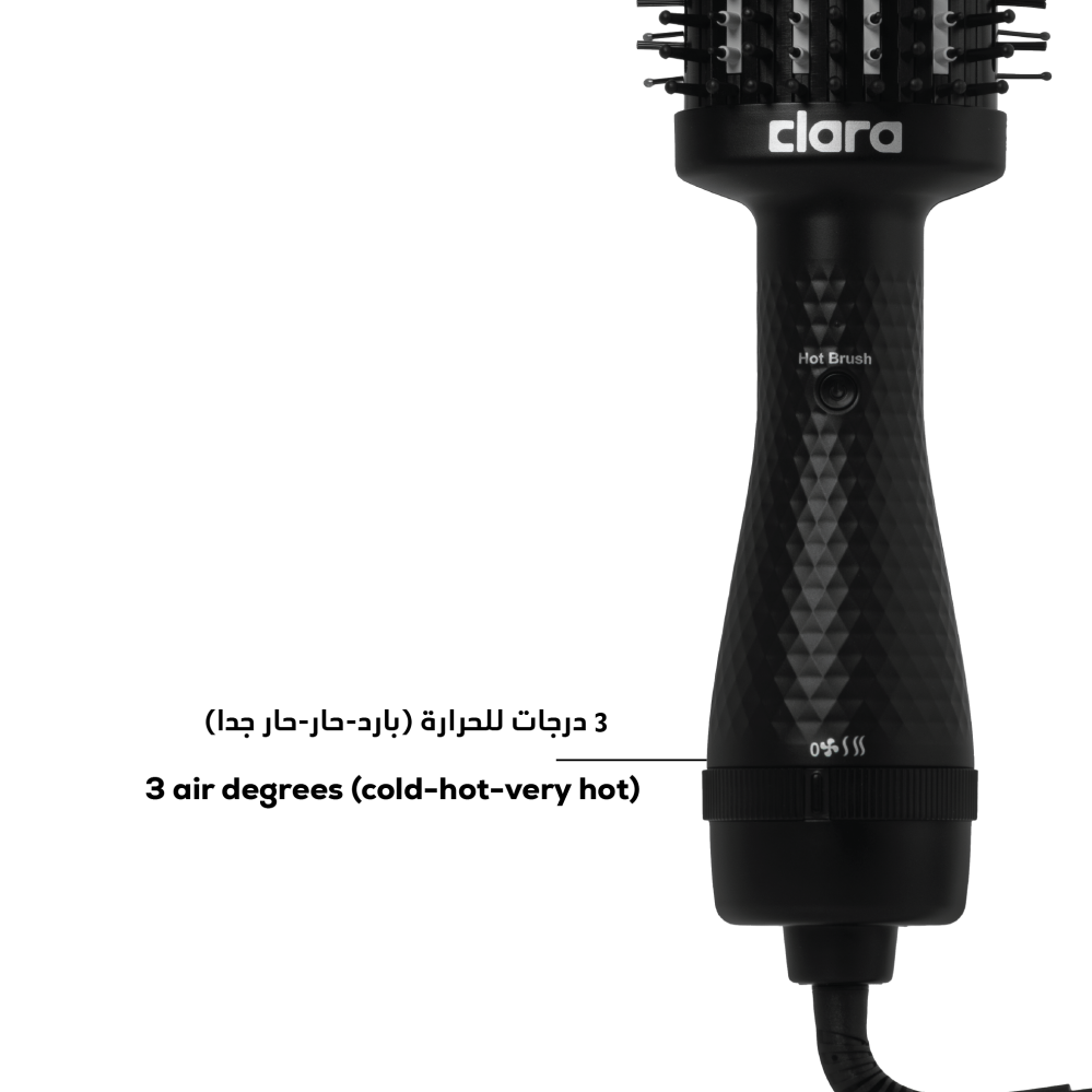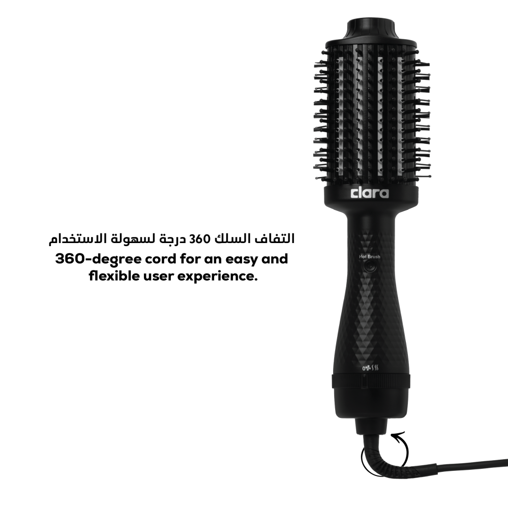 - صمم بجانبين : جانب فرشاة حرارية للتجفيف وجانب للتصفيف.